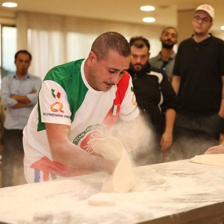 Avendo vinto il Campionato del Mondo per la pizza più grande nel 2019, il nostro artista è uno dei maestri più abili di Italia nell'arte acrobatica della preparazione della pizza.