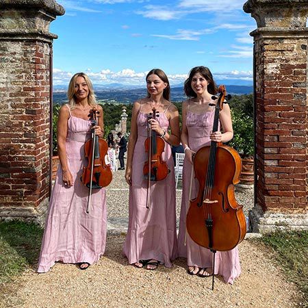 Questo versatile quartetto può anche esibirsi come duo o trio e insieme a un soprano, un pianista o un arpista. Perfetto per matrimoni e banchetti, è ideale anche per eventi a tema Rinascimentale e Medievale; possono eseguire brani del periodo Rinascimentale e Medievale vestiti con abiti rinascimentali.