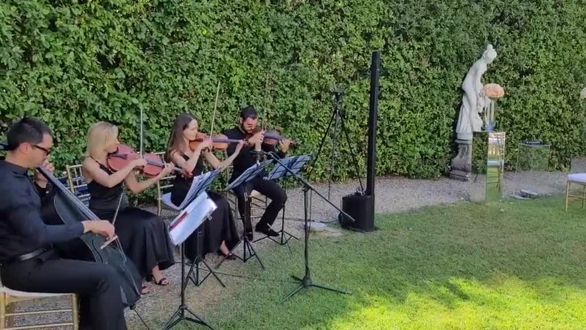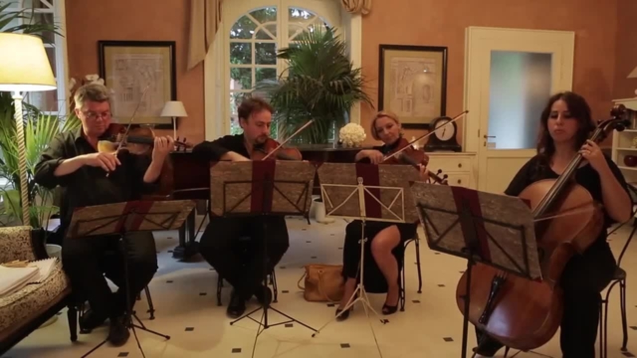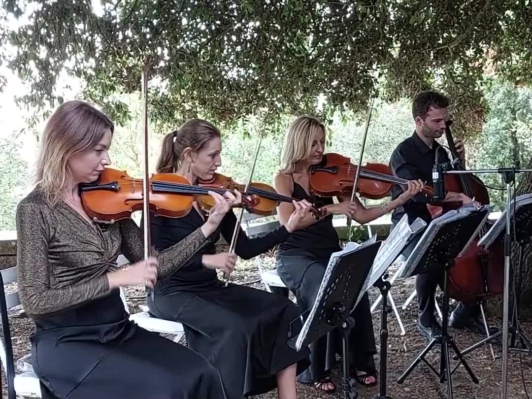 Porta un'abbondanza di classe ed eleganza al tuo evento con questo stupefacente quartetto d'archi. Abbigliamento elegante e composizioni musicali straordinarie eseguite con destrezza lasceranno il pubblico senza fiato. Il loro vasto repertorio di brani classici può essere personalizzato per adattarsi al tuo evento e creare l'atmosfera perfetta.