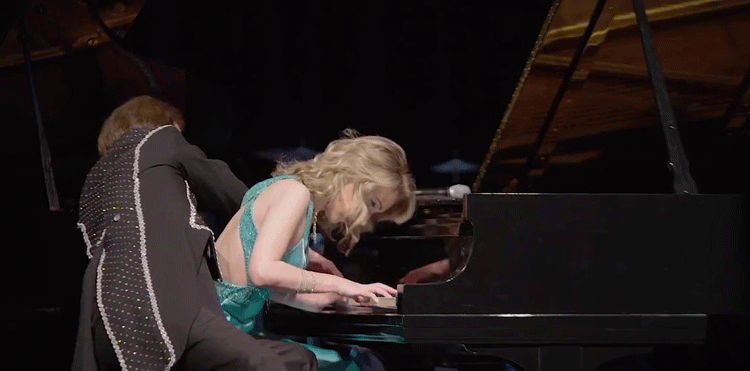 Interagendo l'uno con l'altro e con il pubblico con grande umorismo e fascino, le loro favolose arrangiamenti per pianoforte si fondono con i musicisti di supporto per dare alla produzione un'energia emozionante e dinamica.