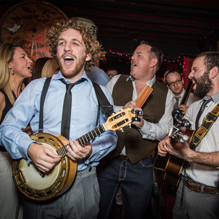 Inoltre disponibili come band per eventi aziendali, i nostri musicisti itineranti hanno la playlist perfetta per far ballare i tuoi ospiti e farli festeggiare fino all'alba. Se stai cercando un set più tranquillo per un rilassante ricevimento o un party in giardino, la nostra band acustica può anche fornire musica di sottofondo eccezionale, suonando in modo stazionario o continuando a suonare come musicisti itineranti.