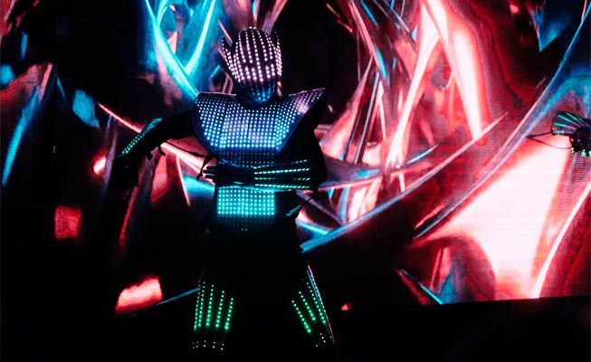Questi robot LED ballerini ruberanno la scena! I loro incredibili costumi si illuminano di diversi colori e proiettano laser in tutta la stanza!