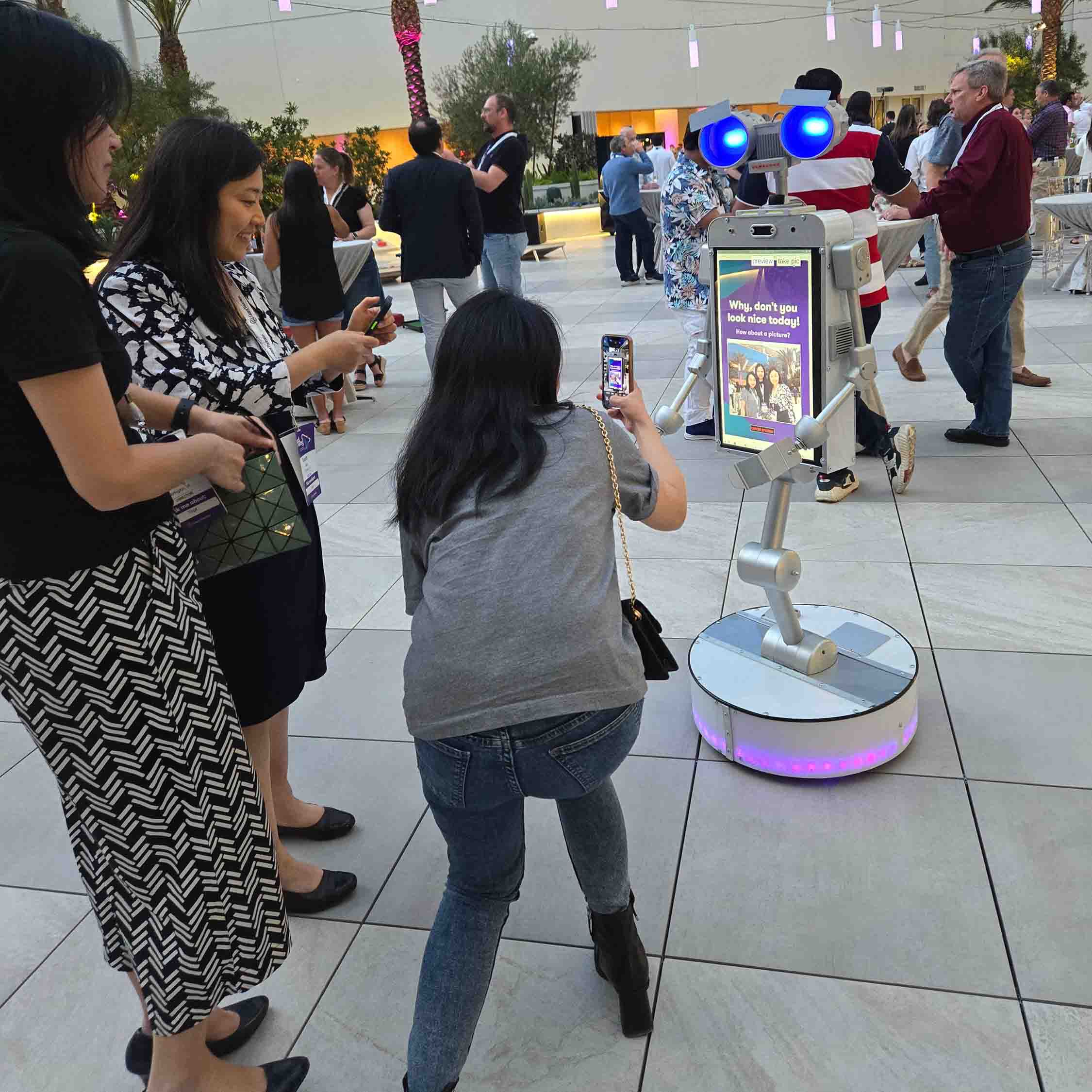 Il nostro Roaming Selfie Robot USA è un'attrazione che fa girare la testa in qualsiasi evento. Il robot interattivo garantisce di attirare l'attenzione e diventare un argomento di conversazione tra gli ospiti. Ottimo per l'intrattenimento delle bancarelle commerciali, fino alle feste private e molto altro ancora.
