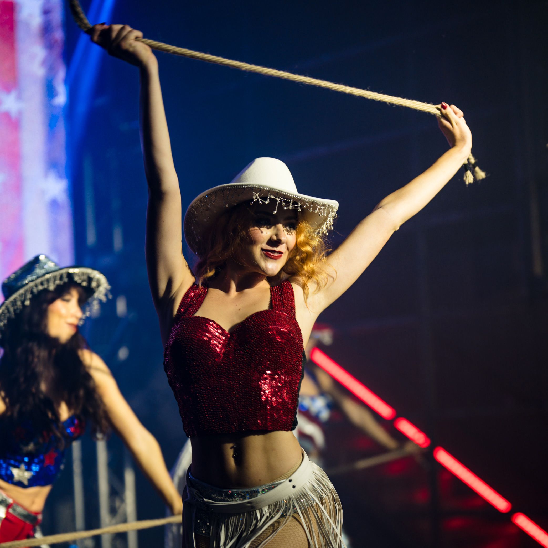 La magia continua con una performance ad alta energia di 15 minuti con cantanti e ballerini di classe mondiale. Celebrando classici country come "9 to 5", "Jolene" e "Sweet Home Alabama", così come successi moderni, Rhinestone Rodeo offre un tocco fresco alle amate melodie country. Ambientato contro uno sfondo a tema USA di lustrini, glamour e scintillio contemporaneo, questo spettacolo è perfetto per eventi aziendali e feste in tutto il mondo, deliziando il pubblico di tutte le età e provenienze.