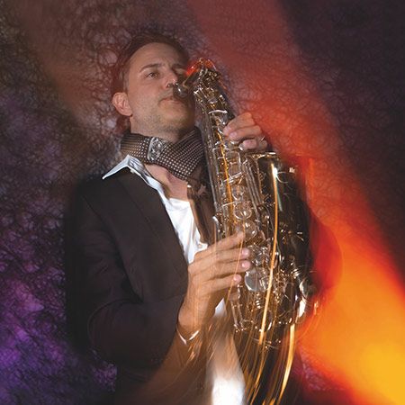 Con la capacità di suonare il sax e il didgeridoo, passerà da uno strumento all'altro, mentre offre un mix DJ dal suo set up professionale.