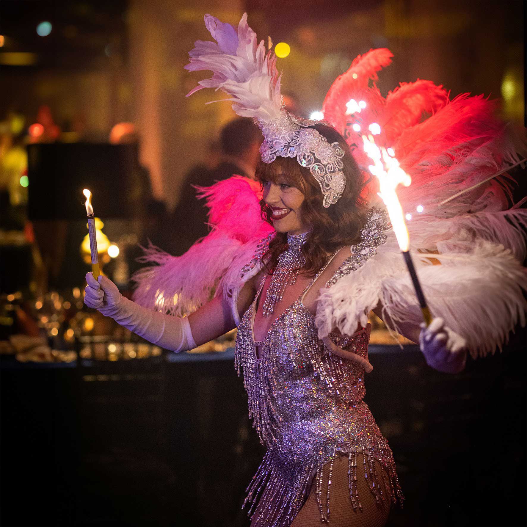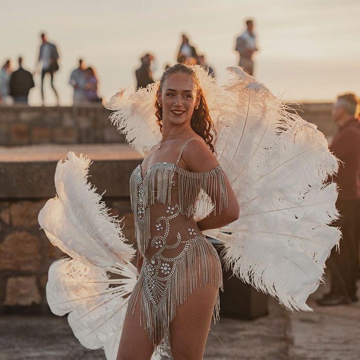 Offriamo anche concetti completamente personalizzati, tra cui costumi su misura, produzione musicale e coreografie adattate al tuo evento. Espandi l'esperienza con atti aggiuntivi, tra cui artisti circensi, artisti del fuoco e musicisti dal vivo, tutti integrati nello spettacolo complessivo.