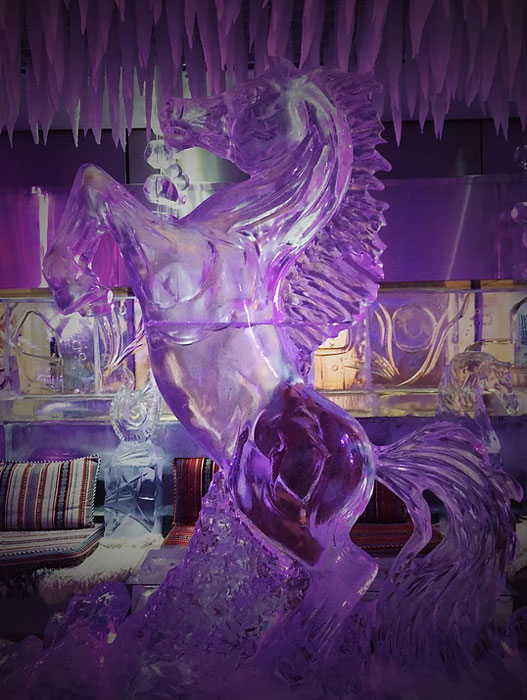 Le nostre Sculture di Ghiaccio a Dubai sono un servizio versatile che si adatta a tutte le esigenze. L'arte del ghiaccio può essere creata prima dell'evento e posizionata al centro come punto focale, oppure lo scultore di ghiaccio può fare una dimostrazione dal vivo di fronte agli ospiti. Ogni singola opera d'arte di ghiaccio, bar di ghiaccio o centrotavola è completamente unica e progettata appositamente per l'evento. Le Sculture di Ghiaccio a Dubai possono lavorare con branding, loghi e persino schemi di colore grazie a un'illuminazione intelligente sotto l'arte del ghiaccio.