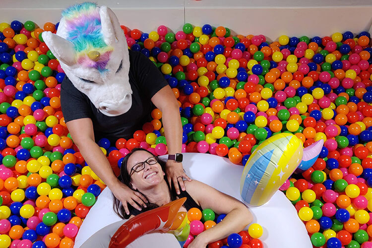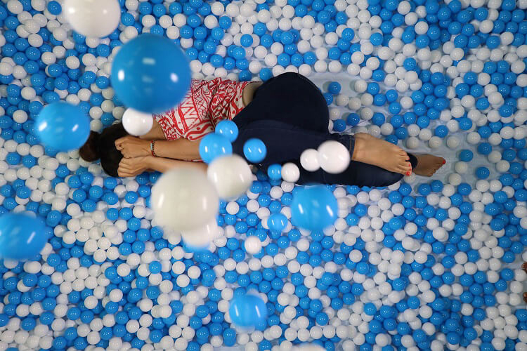 La piscina di palline può essere personalizzata con palline di diversi colori e anche con luci LED e accessori gonfiabili, come puoi vedere nelle immagini qui sotto.