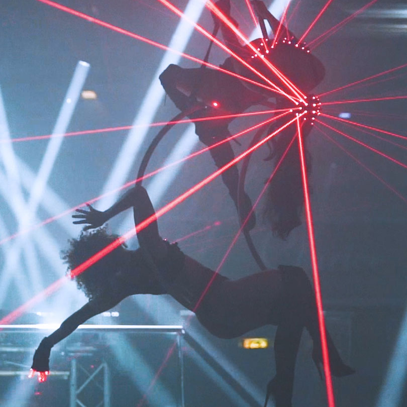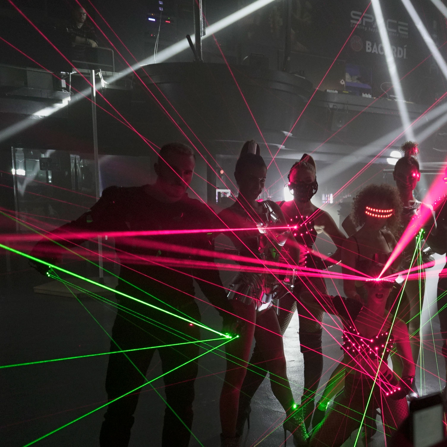 Questa incredibile esibizione con i laser trasporterà il pubblico in un universo futuristico di fasci di luce laser colorati e molti altri effetti sorprendenti.