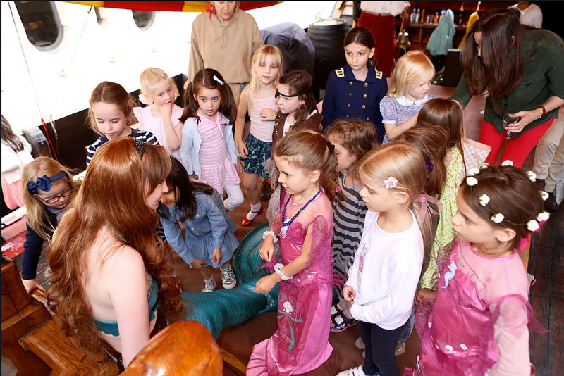 La nostra sirena vera di solito è accompagnata da un affascinante pirata che interpreta il suo interesse amoroso. Insieme, questo duo intratterrà i bambini con diversi giochi e canzoni durante tutto il giorno. Oltre ad essere una nuotatrice eccezionale, la nostra performer sirena è anche una cantante talentuosa. Ha una voce melodiosa da mezzosoprano e può cantare in diversi stili e generi (incluse canzoni per bambini) per il divertimento generale.