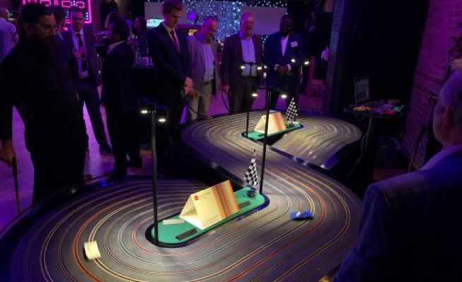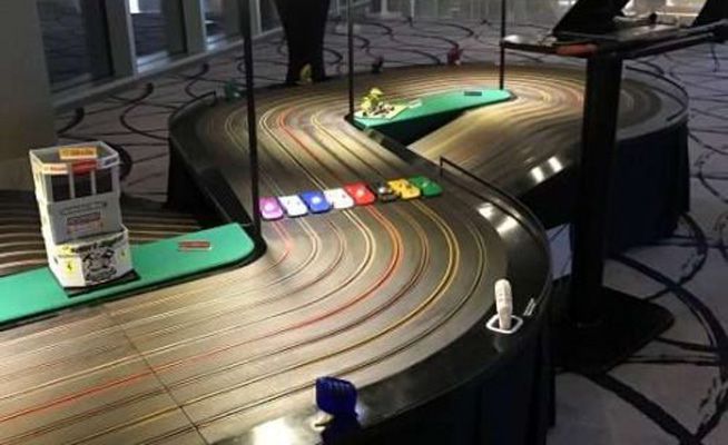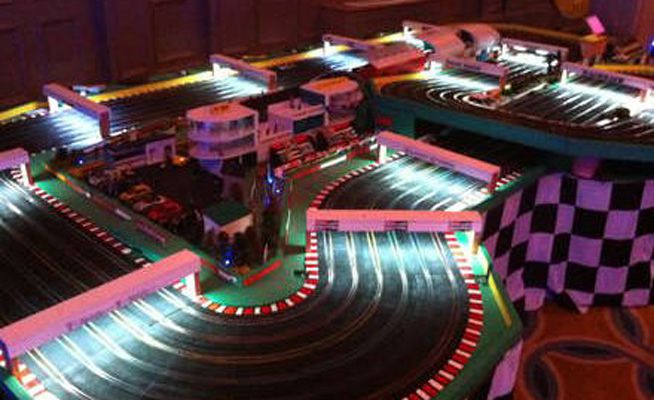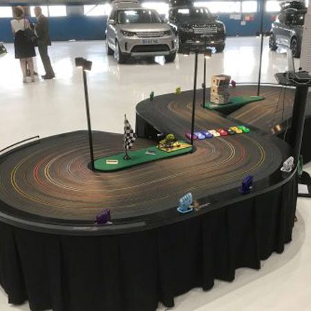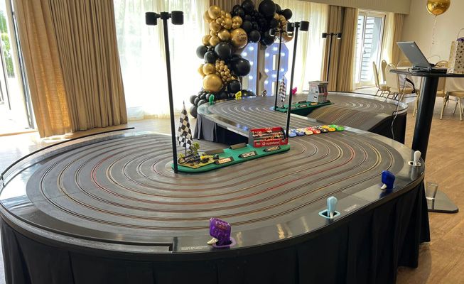 Porta divertimento competitivo al tuo evento con la nostra pista da corsa per auto da corsa gigante, dove gli ospiti di tutte le età e abilità possono gareggiare per un posto sul podio!