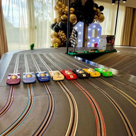 Fino a 8 auto possono gareggiare contemporaneamente, complete di punteggio computerizzato ed effetti sonori, ideale per organizzare competizioni con premi e regali.