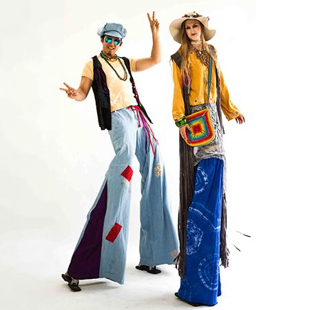 I nostri camminatori su trampoli hippy portano lo spirito degli anni '70 alla vita con pace, amore e potere dei fiori, perfetti per festival ed eventi a tema in tutto il mondo.