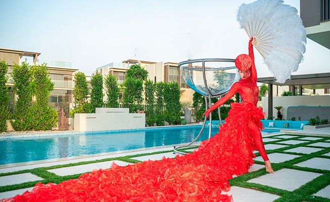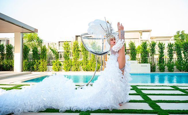 Questo Acrobata del Calice di Martini, con sede a Dubai, fonde l'arredamento di pezzi da esposizione con l'intrattenimento dal vivo, aggiungendo glamour ed energia a ogni tipo di evento.