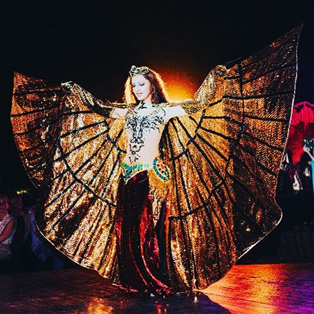 A seconda della formazione selezionata, le danze possono includere ballerini di dabke, artisti di Tanoura e coreografie di danza del ventre di lusso.