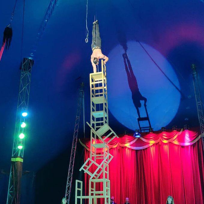 Questo acclamato artista circense è conosciuto a livello internazionale per la sua precisione e abilità nel bilanciamento sulle sedie.