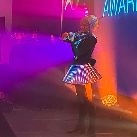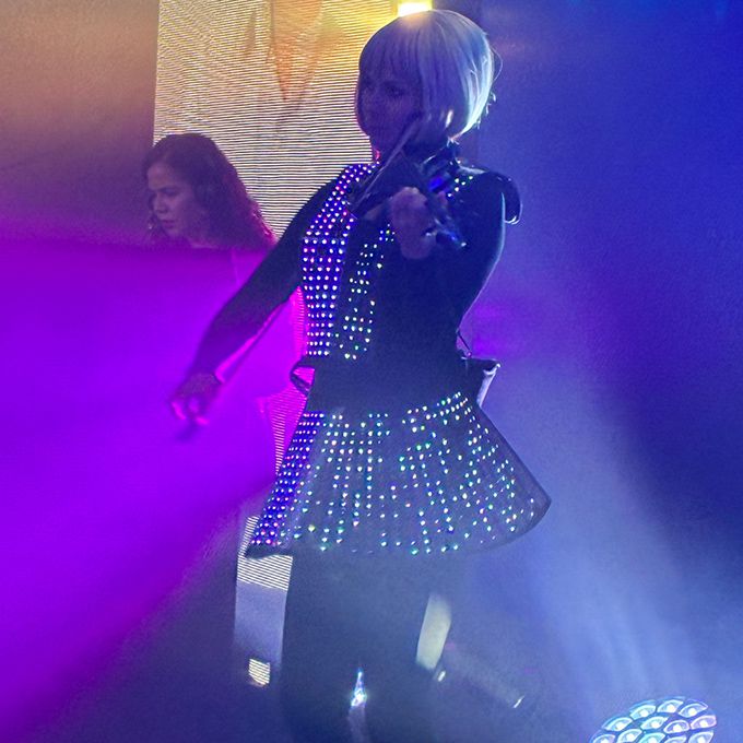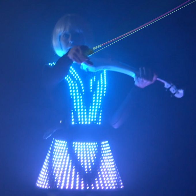 Questa straordinaria esibizione di violino dal vivo è arricchita da centinaia di luci LED programmabili, per una performance in cui la musica incontra la magia moderna.
