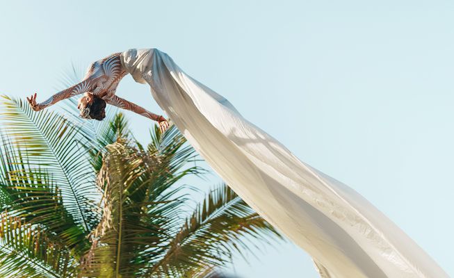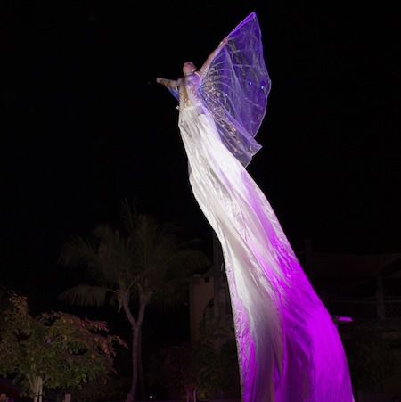 Disponibili come solisti o in duo, questi artisti aerei interagiscono splendidamente con gli ospiti e si abbinano perfettamente agli atti itineranti a terra.