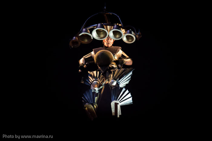 Il sorprendente lampadario musicale è un accessorio aereo di 17 metri di larghezza sospeso dal suo proprio braccio a 55 metri da terra. La geniale creazione del team di architetti celesti significa che il lampadario musicale è in grado di cambiare forma. All'inizio sembra un gigantesco lampadario stravagante, poi l'accessorio si apre e assomiglia a un bellissimo fiore con petali appuntiti mentre i suonatori di campane suonano musica.