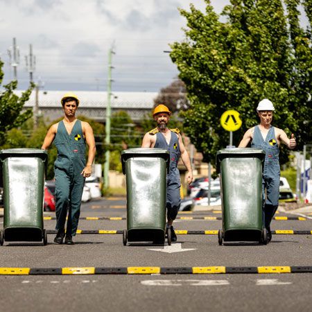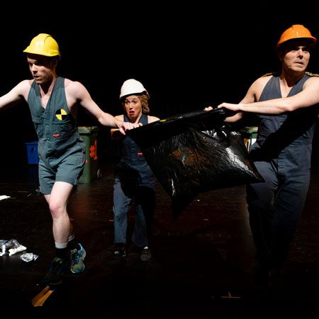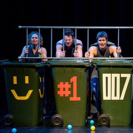 Spettacolo comico dei bidoni della spazzatura