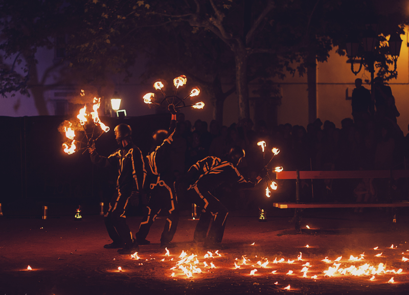 Da due a dieci artisti della pirotecnica professionisti possono essere prenotati per la tua festa di strada, evento all'aperto o festa in giardino elegante. Questo Spettacolo di Fuoco è definito dalla sua originalità e creatività in quanto incorpora teatro, danza e acrobati, rendendolo più coinvolgente e interessante.