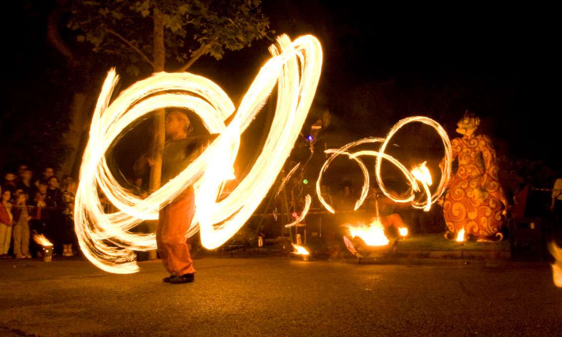 I loro trucchi di mangiare il fuoco e le performance acrobatiche possono essere la ciliegina sulla torta per eventi aziendali, feste a tema Circo o Street Art e matrimoni in giardino. Le loro impressionanti abilità nel ballare e giocolare con il fuoco renderanno il tuo evento un'occasione da ricordare e sicuramente faranno parlare la gente.