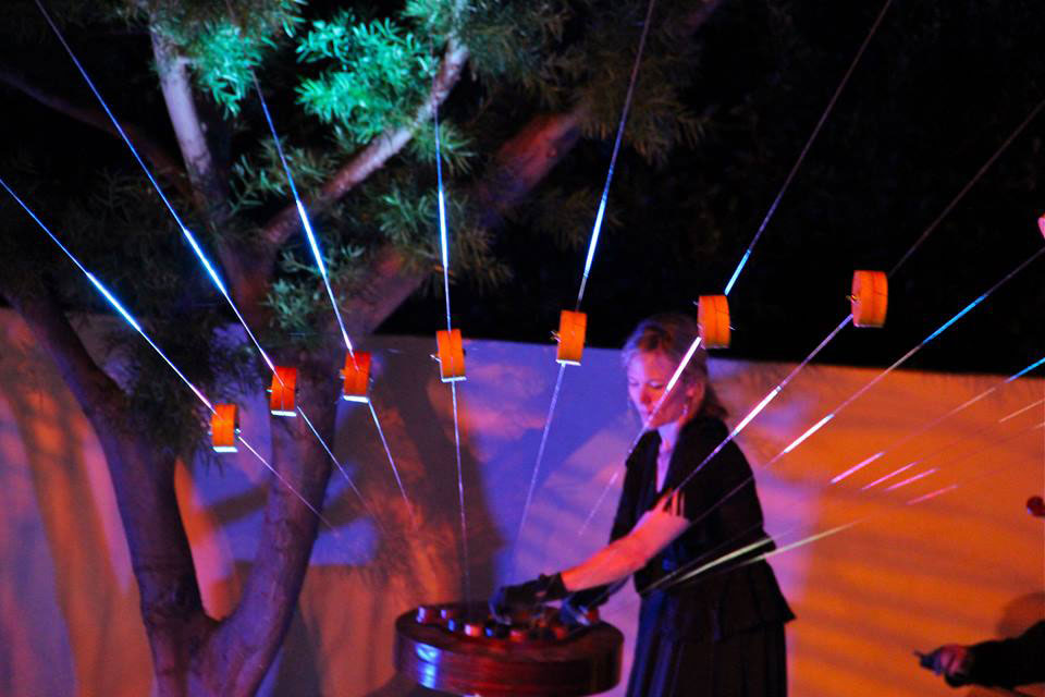 String Collaborative Ensemble è un gruppo di performance ibrido che combina musica, danza, proiezioni e le loro caratteristiche installazioni di arpe immersive giganti.