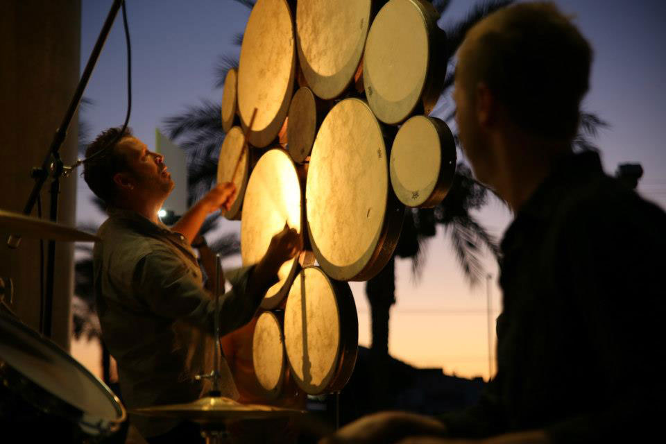 Utilizzando strumenti inventati e sculture sonore per creare il loro paesaggio di performance unico e la loro impronta sonora, questo ensemble di archi è acclamato dalla critica per le loro installazioni di performance su larga scala che trasformano ambienti e architetture in giganteschi strumenti musicali.