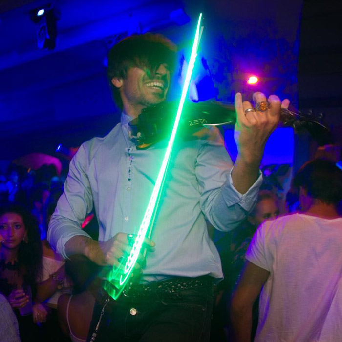 Dotato di una varietà di incredibili violini elettrici, luci a LED e archi illuminati, le sue esibizioni dal vivo riguardano tanto gli aspetti visivi quanto la musica stessa. Il suo vasto e variegato repertorio può essere adattato alle esigenze dei clienti e include generi come house, techno, EDM, lounge, deep house e molto altro.