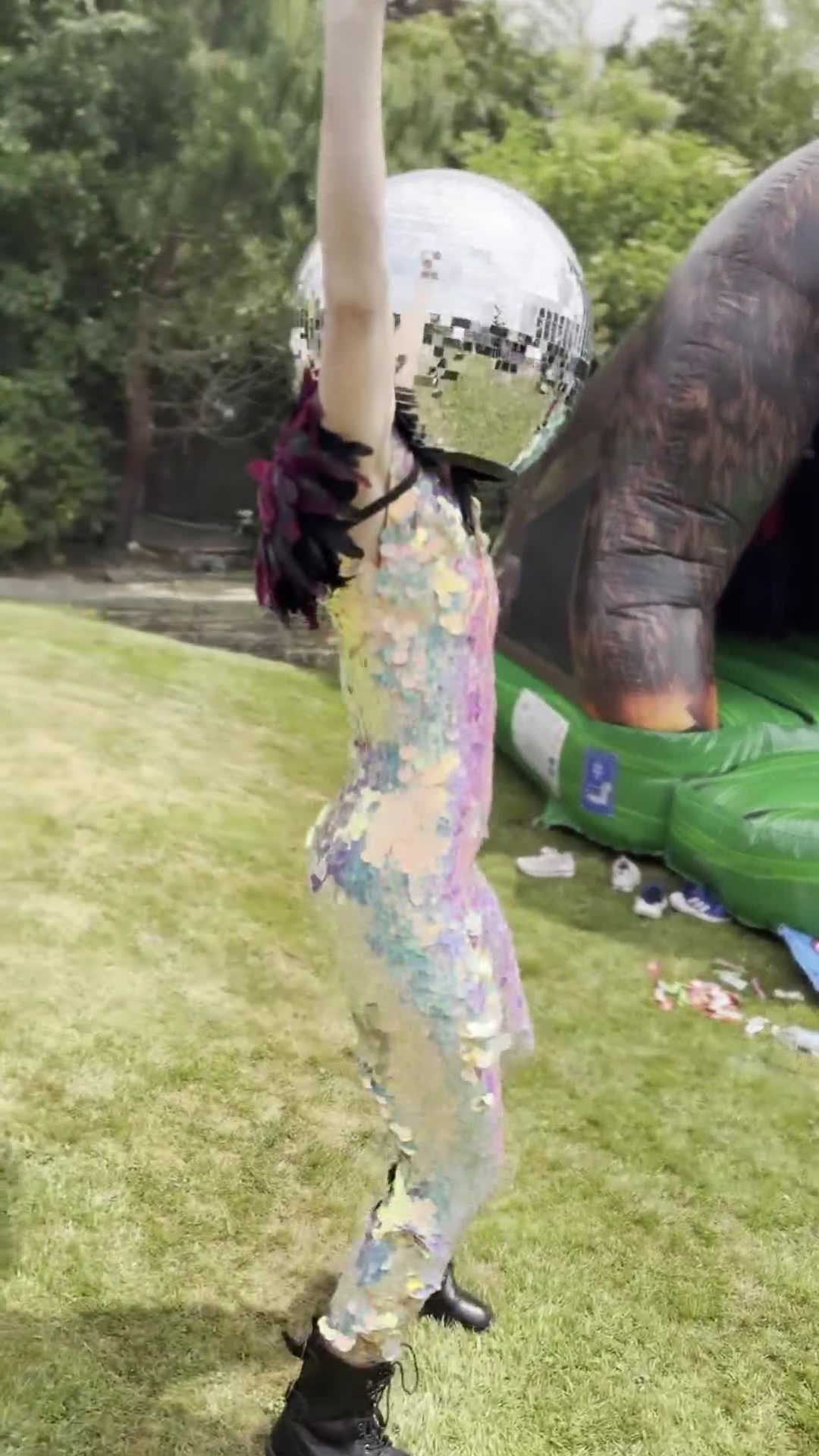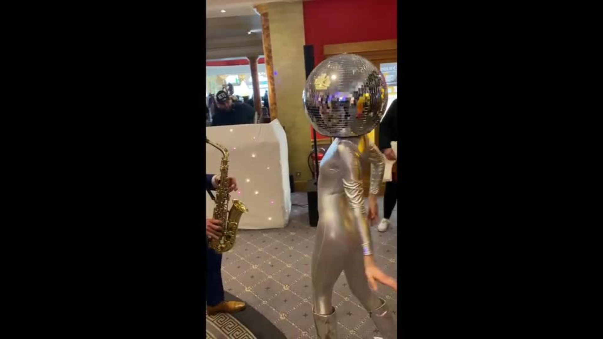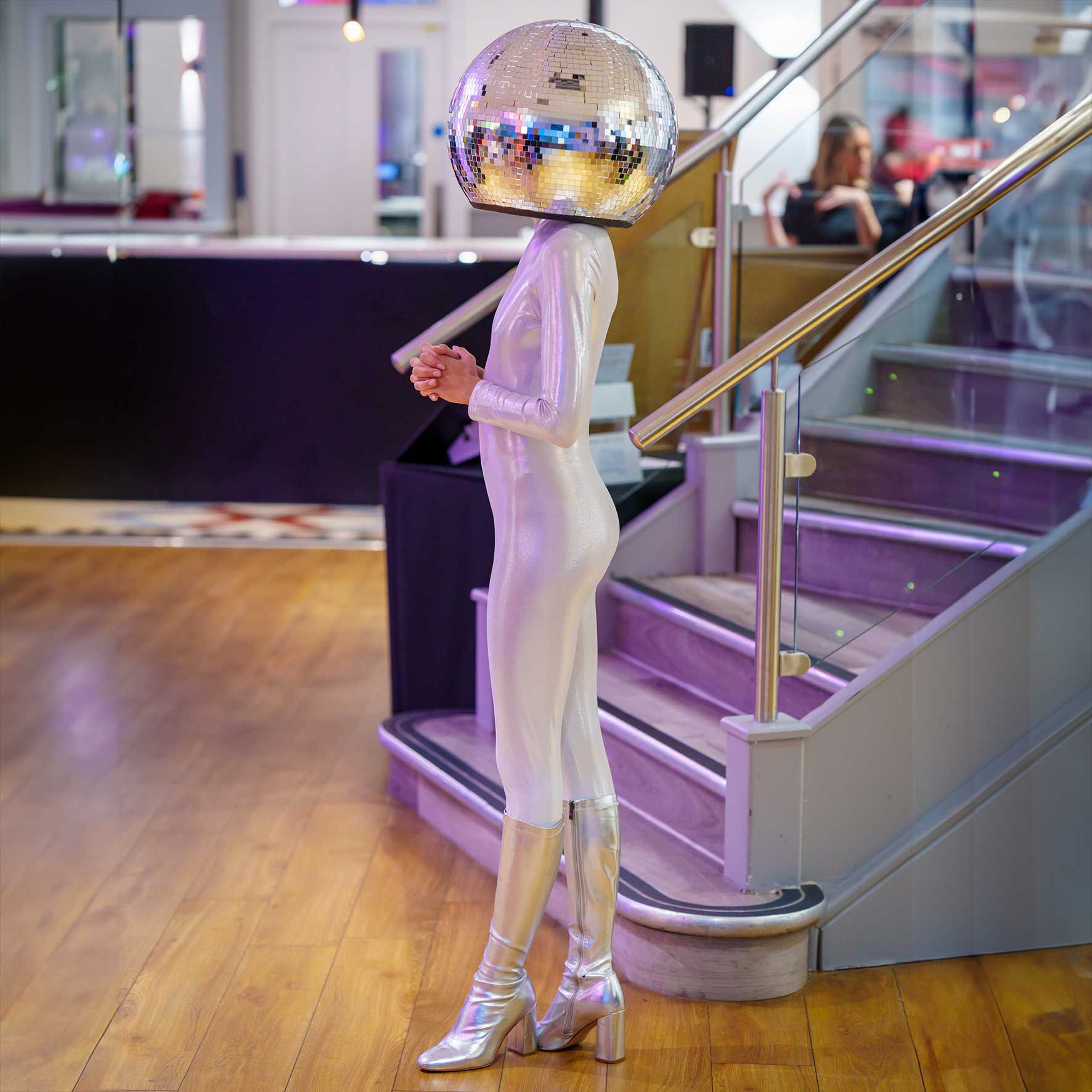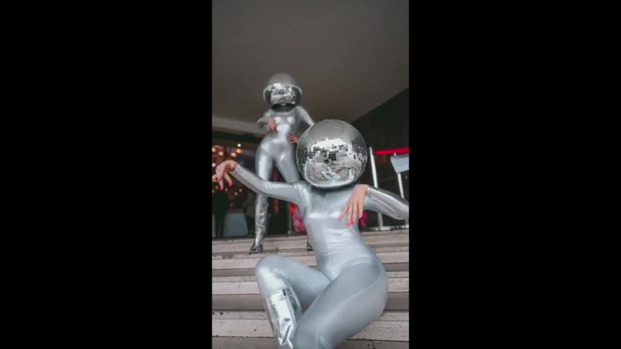 Divertimento ideale con il distanziamento sociale, sembrano teatrali anche a distanza e i loro volti sono sempre coperti dalla maschera luccicante a forma di palla da discoteca.