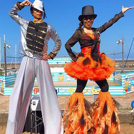 Situati a Tokyo, i nostri giocolieri sui trampoli sono disponibili per eventi in tutto il Giappone.