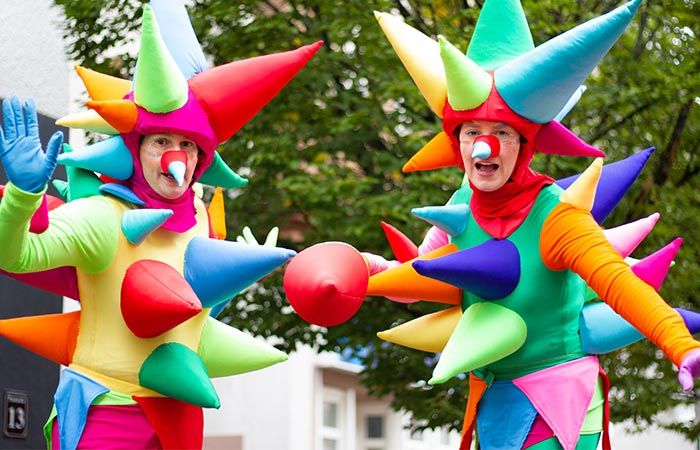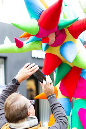L'ideale spettacolo itinerante per festival, temi circensi colorati, parate, feste per bambini o private, celebrazioni aziendali estive e altro ancora!