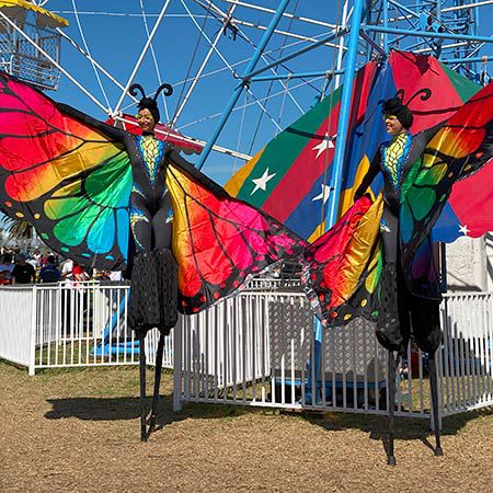Una scelta popolare per eventi di strada e sportivi, in cui possono posare anche per le foto, le nostre farfalle sui trampoli sono un ottimo modo per dare il benvenuto alle persone al tuo evento.