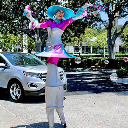 Armata di una pistola a bolle, il nostro personaggio spaziale itinerante diffonde gioia tra gli ospiti di tutte le generazioni mentre si muove per la location.