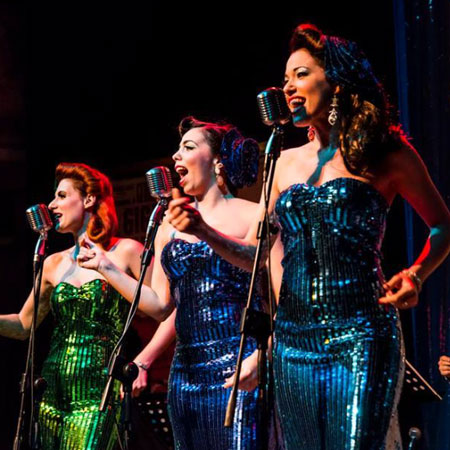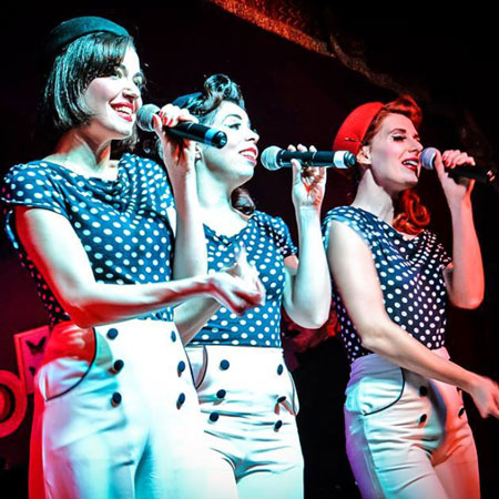 Con un marchio che deriva da brani originali in stile vintage e canzoni pop anni '80 e '90, il nostro trio femminile ha reinterpretato questi generi in uno stile swing anni '50. Le nostre cantanti offrono esibizioni altamente energetiche, sono piene di carattere e teatralità, creando uno spettacolo vintage favoloso perfetto per l'intrattenimento aziendale, esperienze dopo cena, feste private, festival e ogni occasione che desidera intrattenimento a tema anni '50.