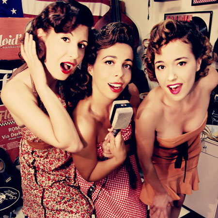 Un trio femminile a tema anni '50 che incanta il pubblico con esibizioni spiritose e carismatiche, l'attrazione vintage perfetta per qualsiasi evento che desideri portare l'effetto WOW. Il nostro trio italiano è composto da magnifiche cantanti in stile anni '50 con costumi e movimenti abbinati.