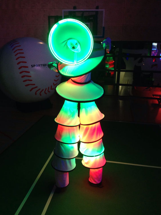 Questi camminatori su trampoli a cerchio presentano 11 anelli che sono programmati per brillare in una serie di colori diversi, aggiungendo incredibili dinamiche non solo ai loro costumi ma anche al tuo evento.