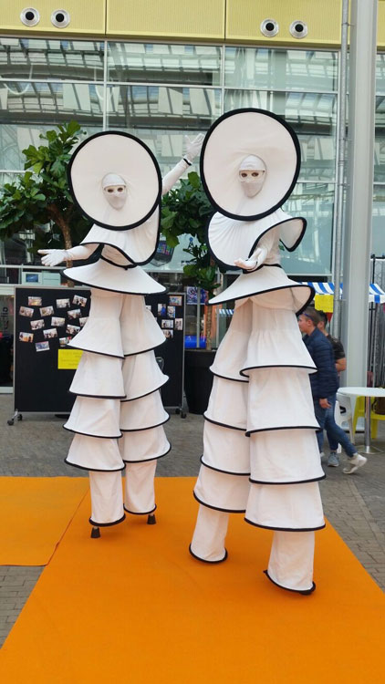 I nostri camminatori su trampoli a cerchio vantano un concetto unico che cattura immediatamente l'attenzione di tutti gli ospiti e sono perfetti per incontri e saluti, mescolarsi con gli ospiti, accogliere i partecipanti ed entusiasmare la folla.