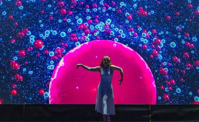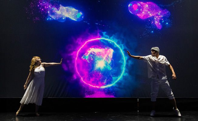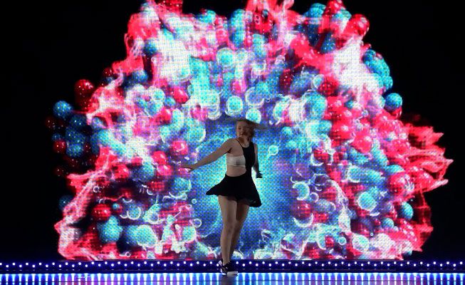 Questo spettacolo personalizzabile di video mapping è un'opzione interattiva per aprire la tua attivazione o evento di conferenza e può includere uno o due performer.
