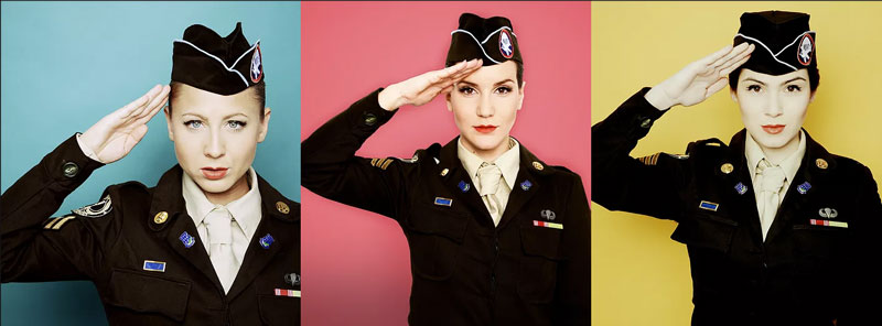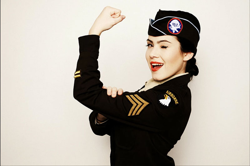 Splendide e affascinanti, queste cantanti vintage riempiranno il tuo locale di nostalgia con le loro labbra rosse, autentici costumi militari con l'aquila americana e le loro stupefacenti arrangiamenti vocali.