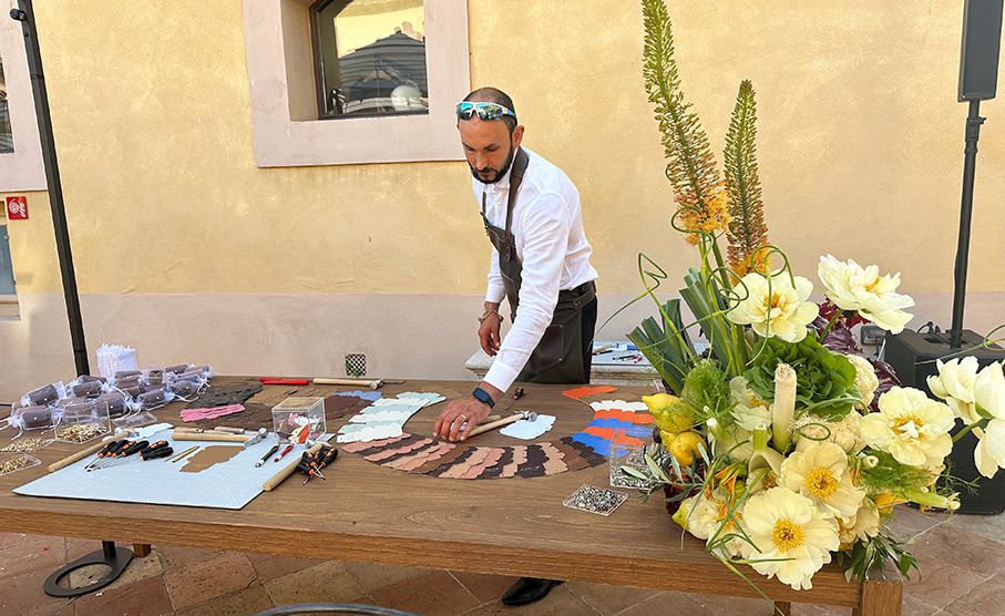 Utilizzando pelle di lusso italiana riciclata, questa esperienza coinvolgente porta l'autentica maestria artigiana italiana agli eventi.