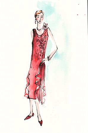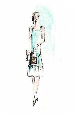 This vintage fashion illustrator fits right in at any jazz lounge or speakeasy, and her outfit reflects the iconic 1920s style of a renowned fashion designer.
