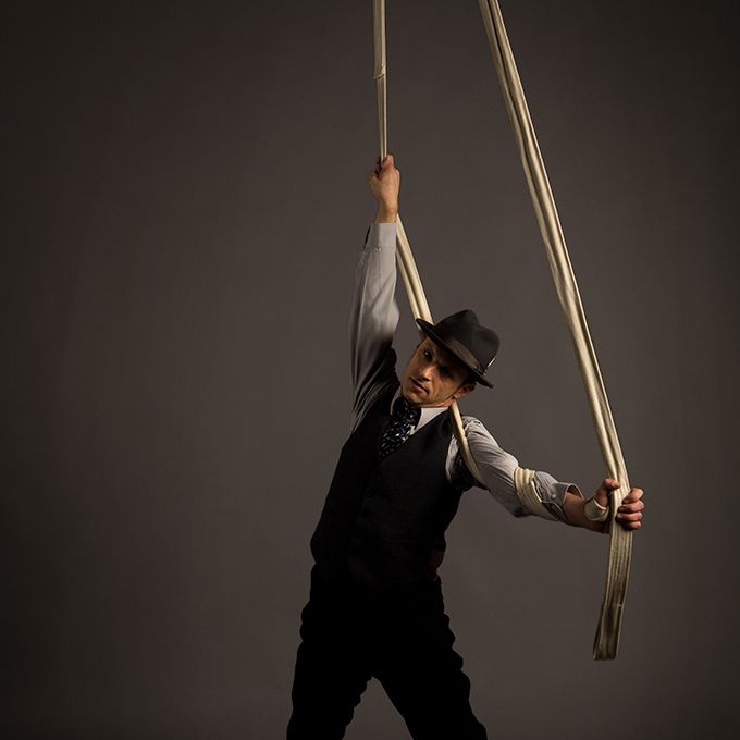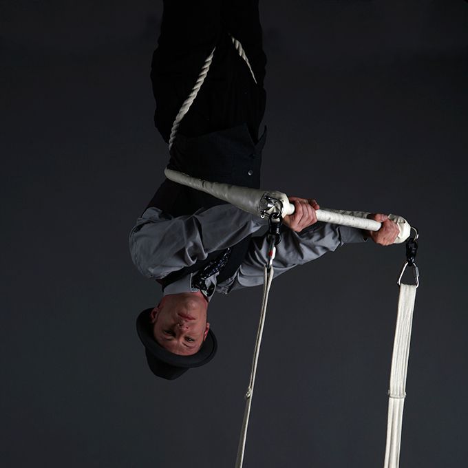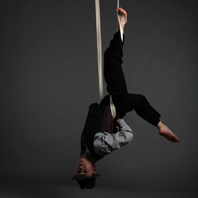 Showcasing the rare Strapeze apparatus, a striking fusion of trapeze and aerial straps. This act delivers a visually captivating performance