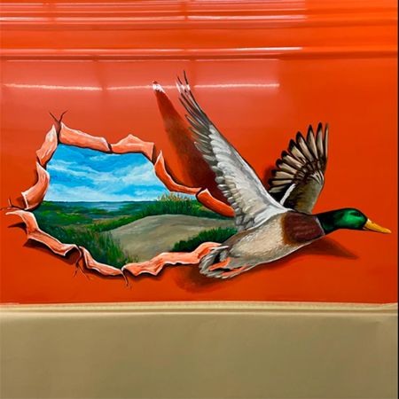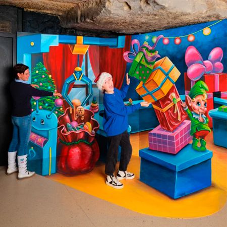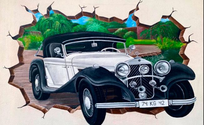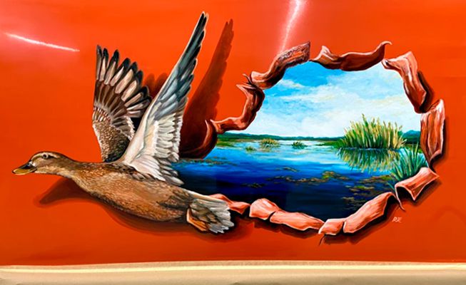 Our muralist plays with optic illusions and can incorporate elements from the surrounding area into the design, such as floors or adjacent walls