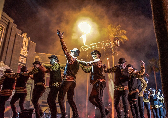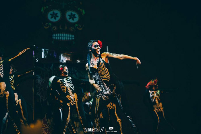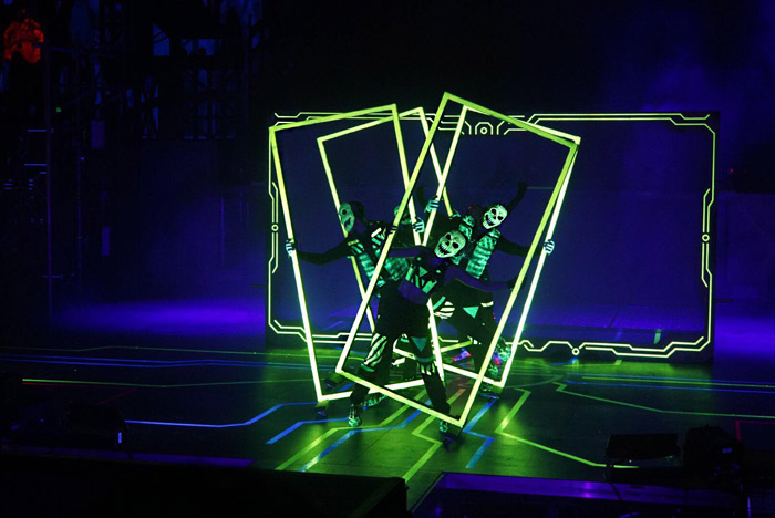 The themed dancers are famous for their intricate concepts and choreography, utilizing shadow play, blacklight art, and projection mapping.
