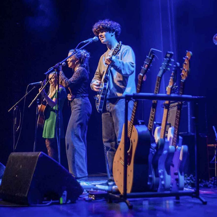 Available as a duo, trio, or quartet, the full lineup features three vocals, two guitars, one bass, and drums.