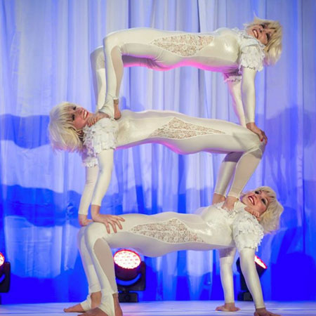 Our Acrobatic Triplets captivate audiences of all ages with their exceptional hand-to-hand contortion act. Showcasing incredible strength, flexibility, and trust, this contortionist trio is the ultimate addition to your corporate entertainment.