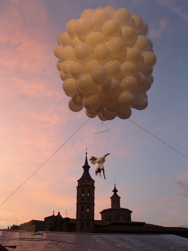 The blend of 300 white helium balloons, a skilled sky performer, and the urban architecture of your city creates an unforgettable visual experience. Our Aerial Balloon Dancer will execute stunning acrobatic moves while suspended from hundreds of helium balloons, capturing the public's attention and leaving them mesmerized.