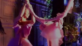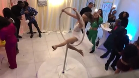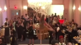 She can perform choreographed routines, ambient sets, and even an interactive champagne aerial act where she pours drinks from her lollipop lyra setup.