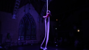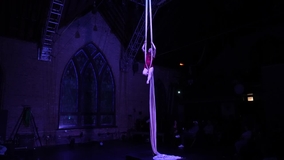 Suspended in silks, the aerialist climbs with strength and elegance, creating striking shapes high above that captivate and command every gaze